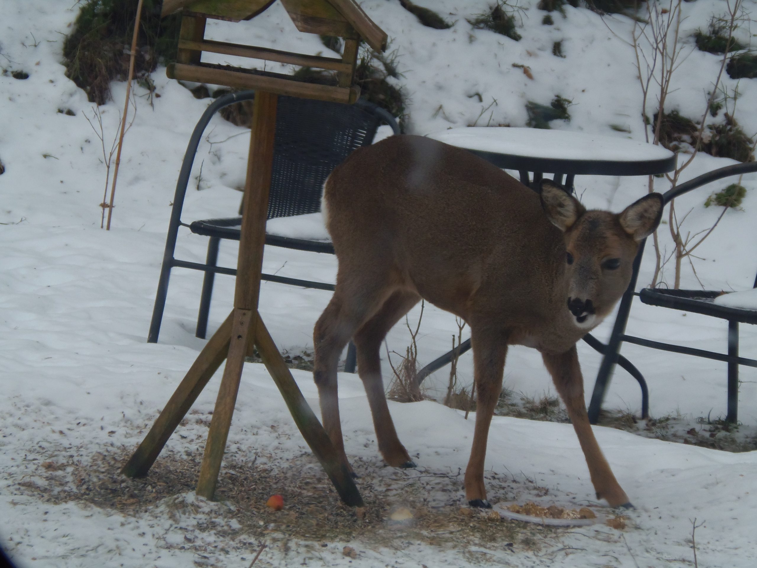 Unseren regelmäßigen Reh – Futtergast haben wir schon ins Herz geschlossen.