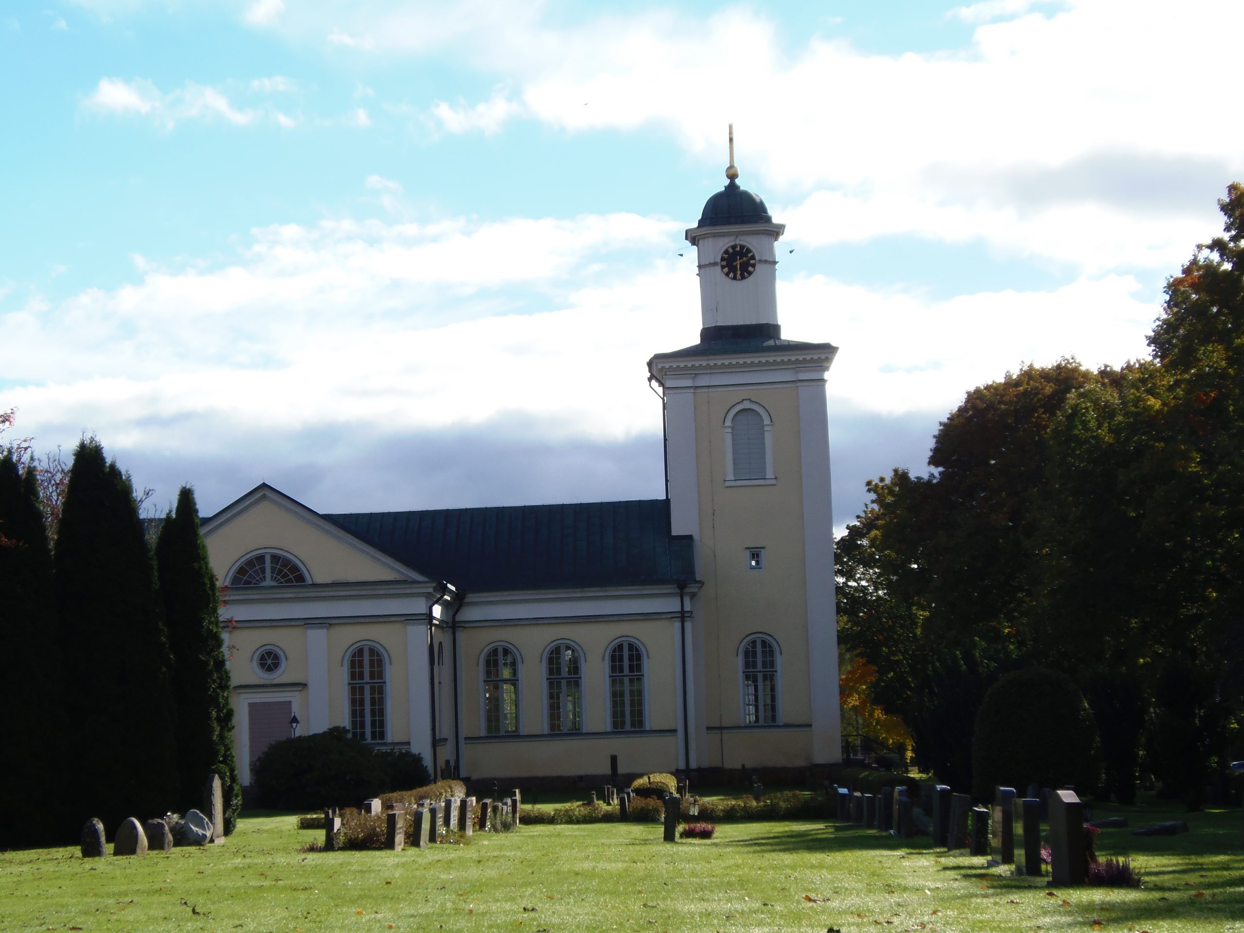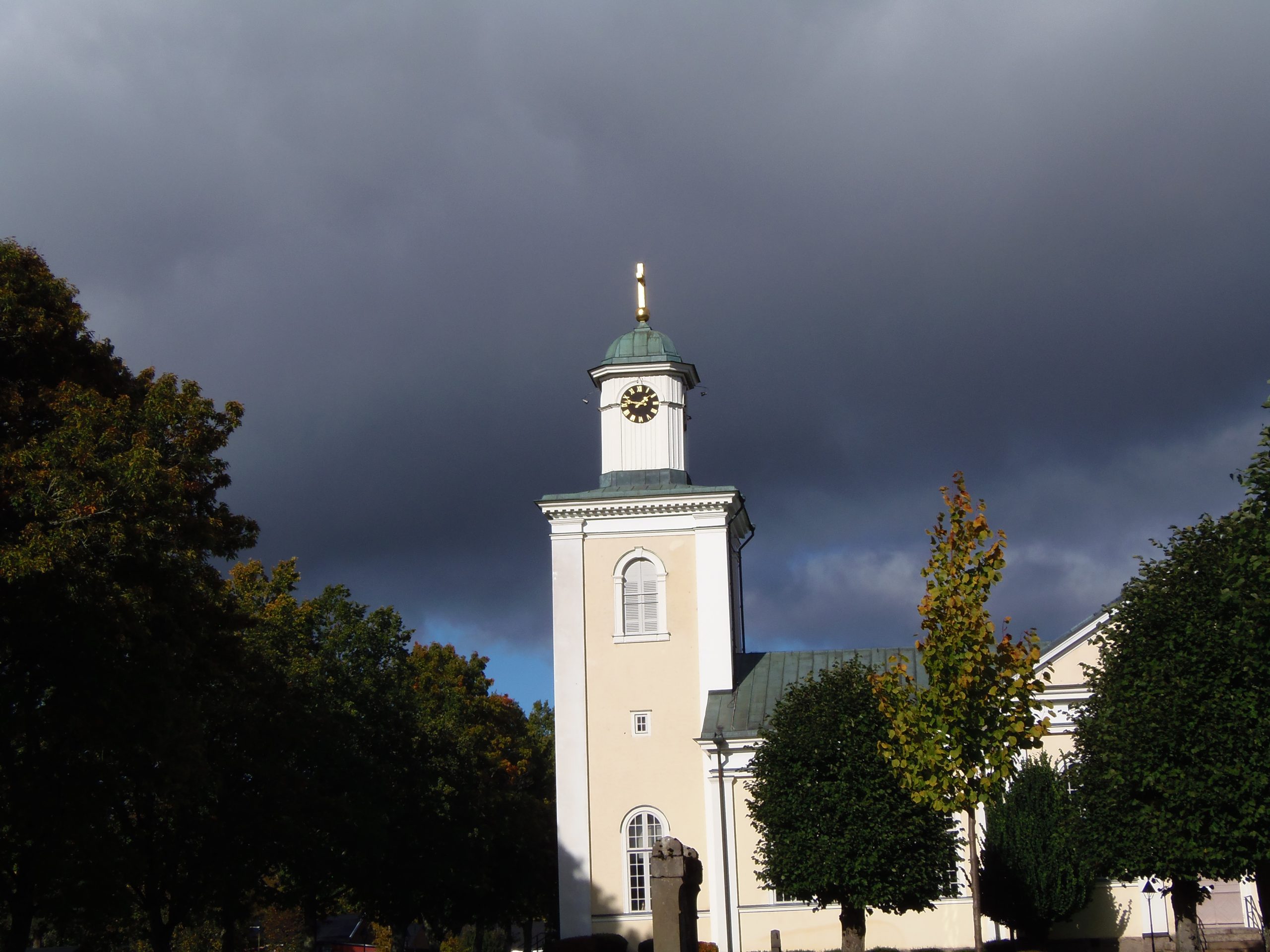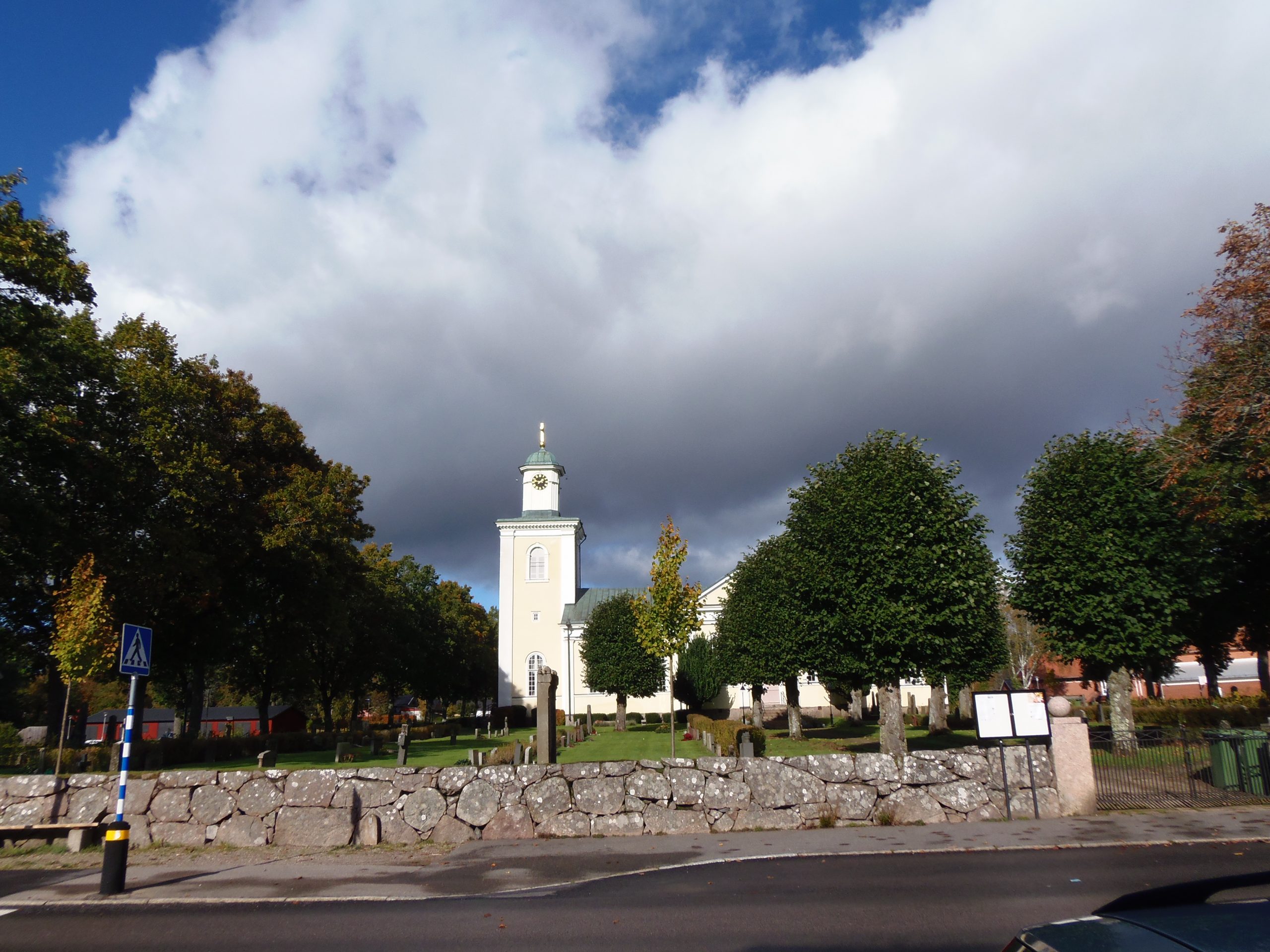 Blick auf die Kirche und Friedhof. Uns fällt immer wieder auf, wie geplegt die Anlagen sind. Dies fällt uns auch immer wieder in Växjö auf. Die Stadt strahlt im Gegensatz zu deutschen Städten in der Größenordnung mehr Ruhe aus. Generell ist das Leben hier in Schweden beschaulicher und vor allem angenehmer und nicht so nervig.
