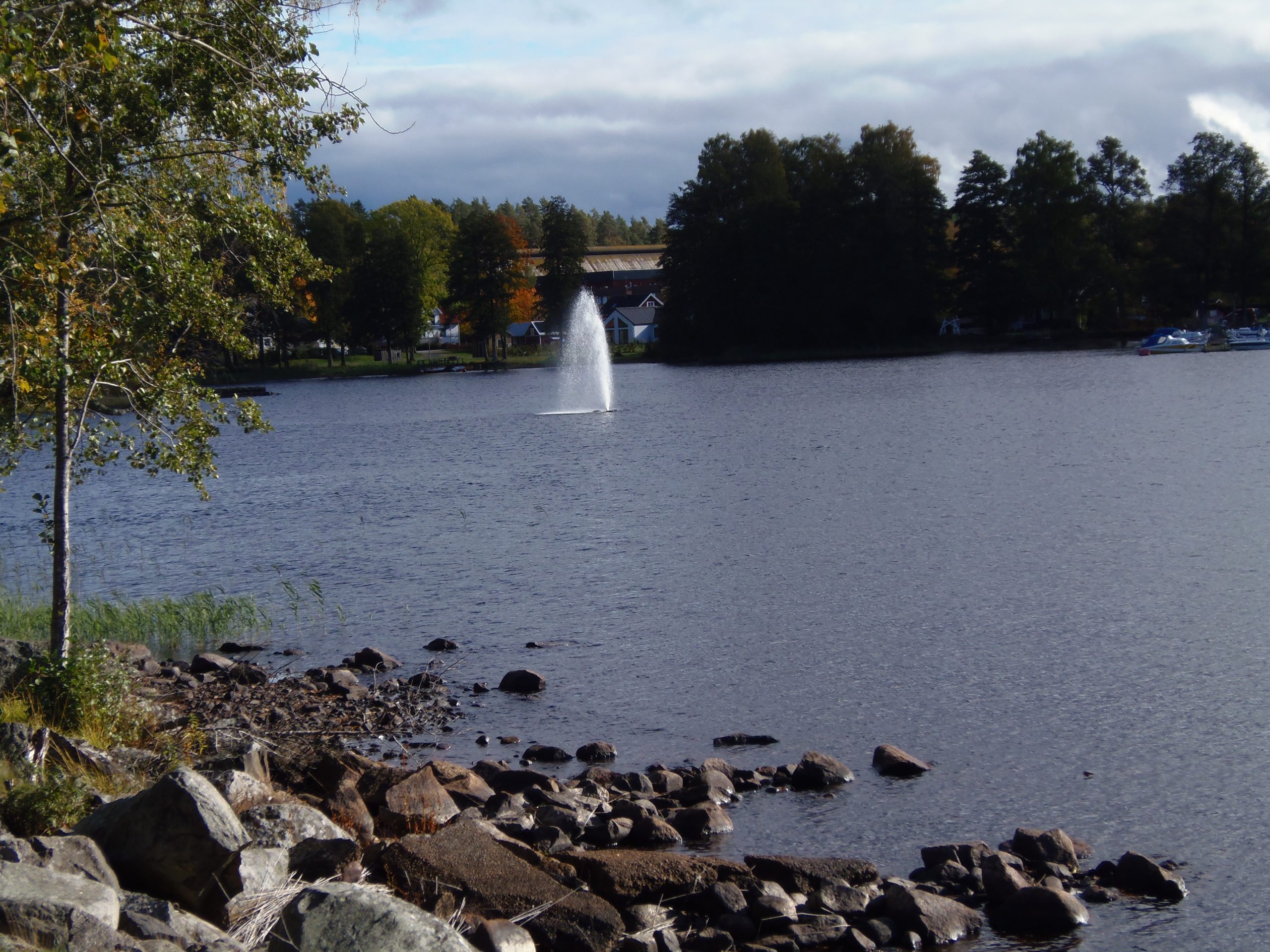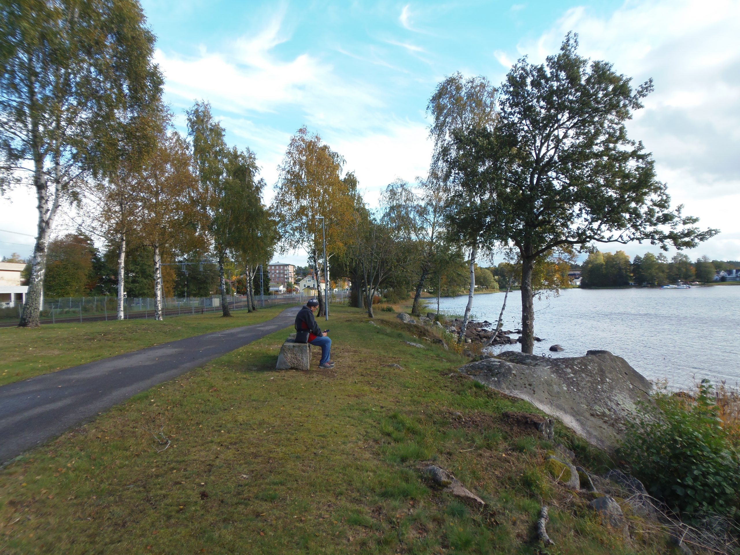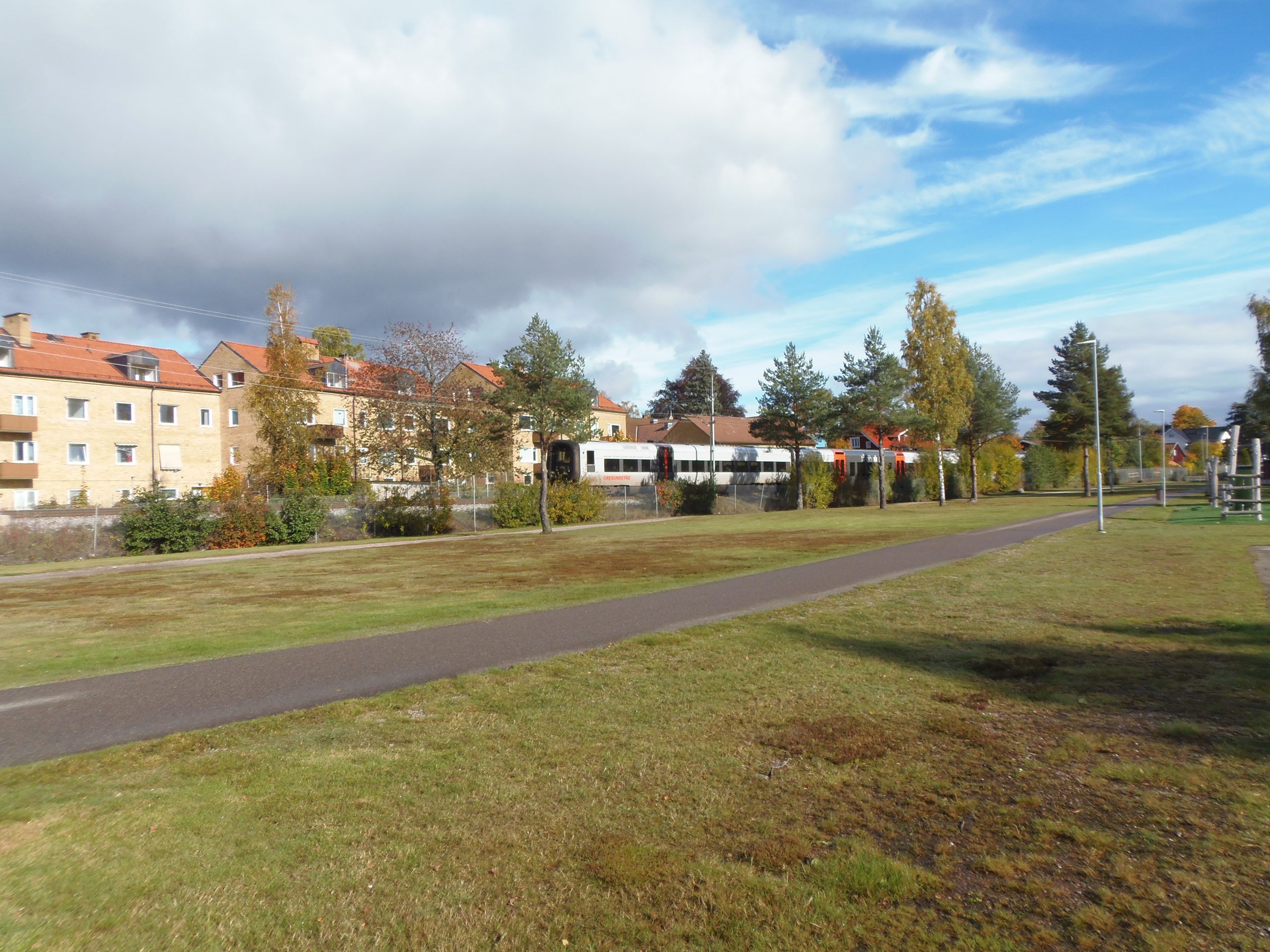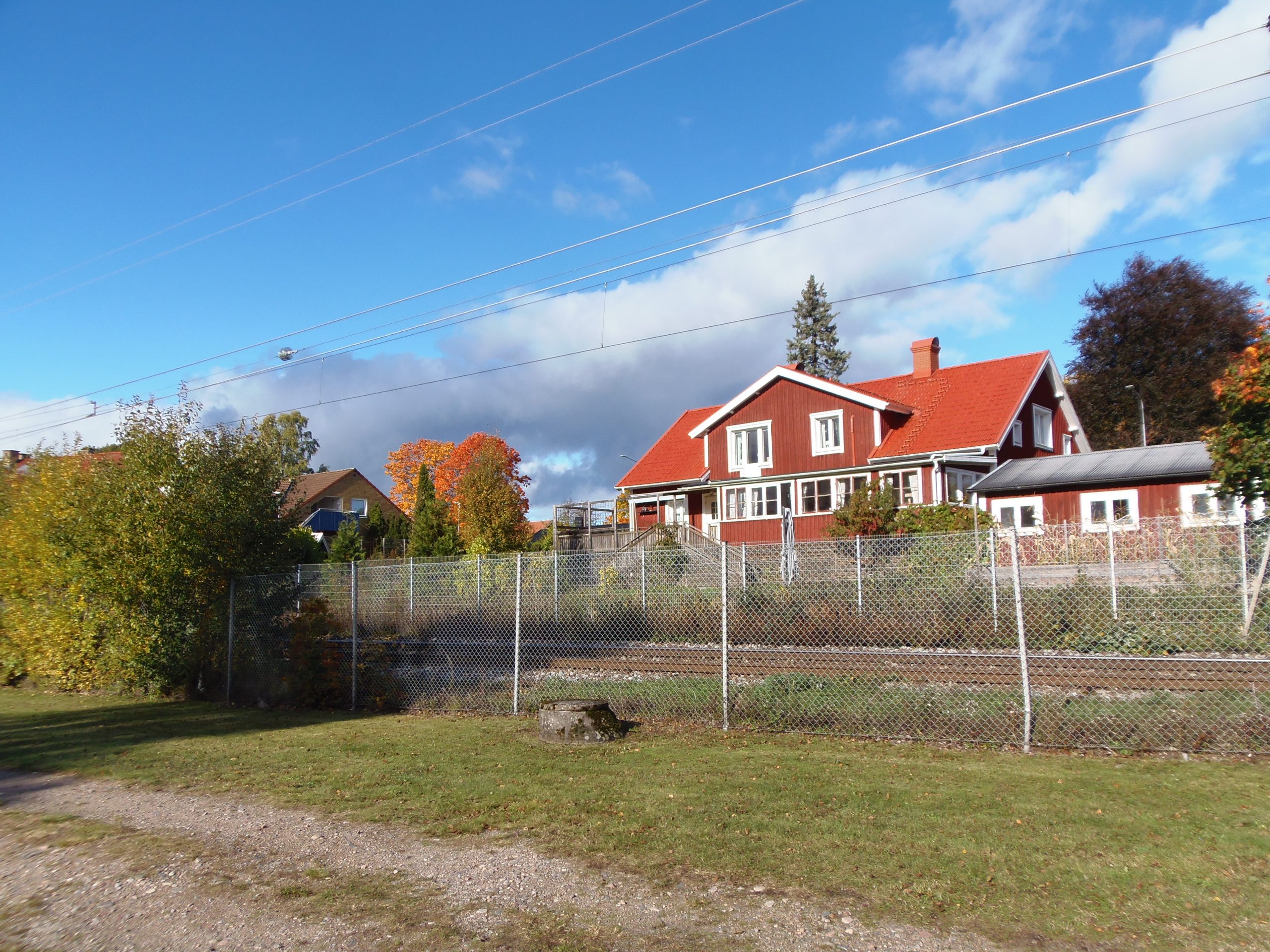 Am Rottnen mit ausfahrendem Zug aus dem Bahnhof. Habe es ja schon erwähnt, wir können mit dem Zug von hier nach Växjö, Kalmar und auch nach Kopenhagen fahren.