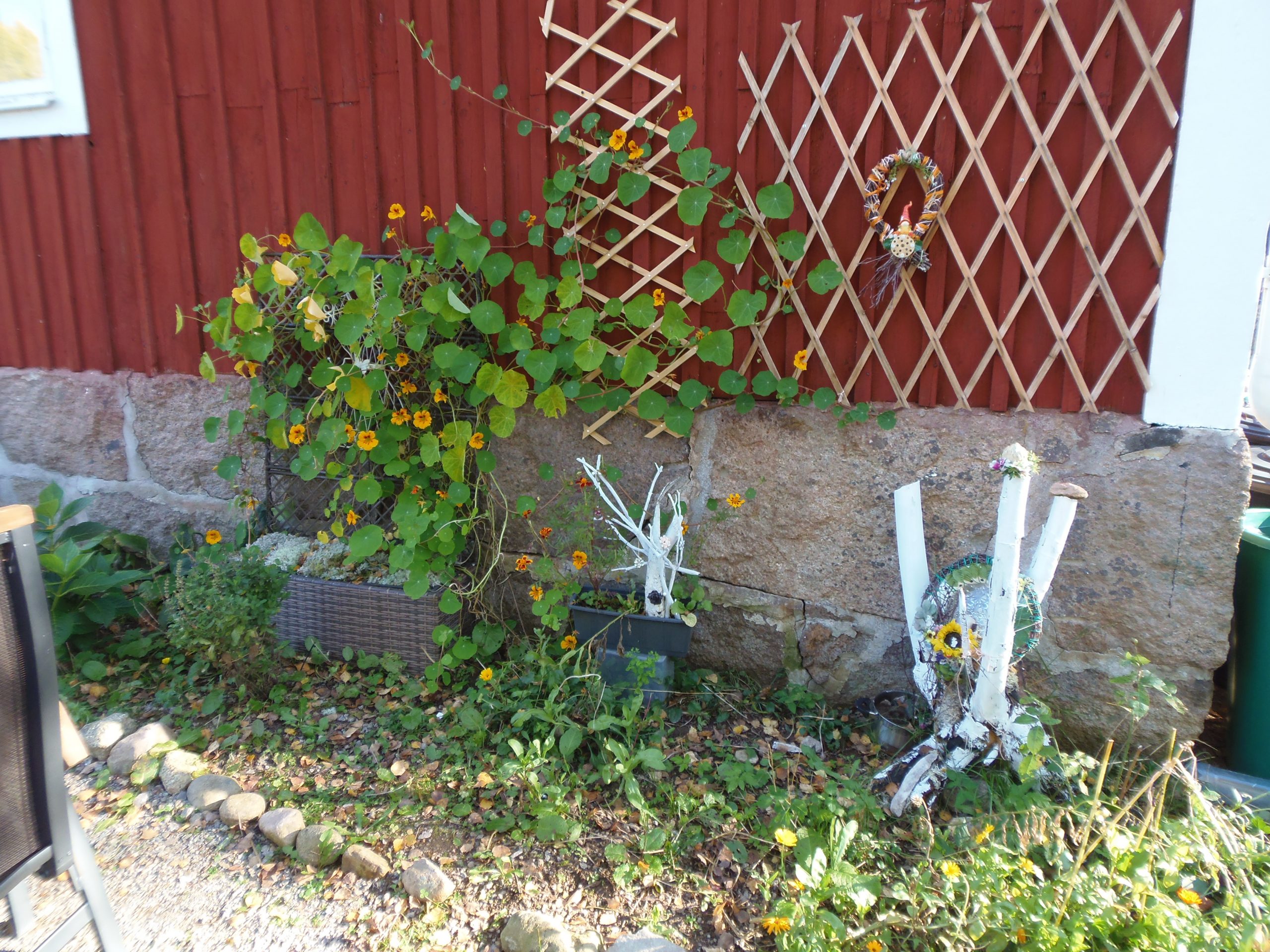 Auch die Kapuzinerkresse ist erfroren. Heute am Dienstag war es vorbei mit dem schönen Oktoberwetter. Es war zwar milder, aber den ganzen Tag grau bewölkt, mit leichten Regen. Deswegen war angesagt, den Garten und das Anwesen so langsam winterfest zu machen.
