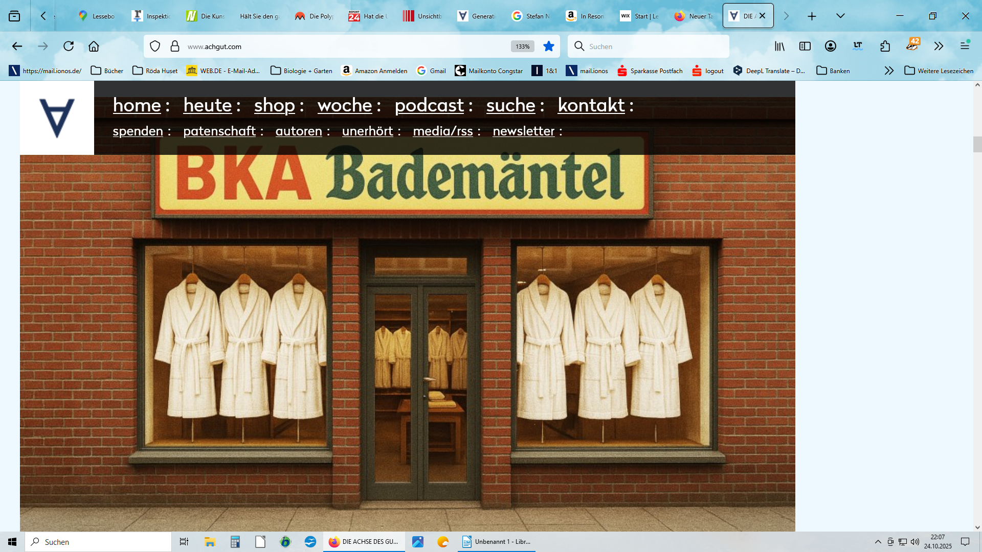 Bildschirmfoto von AchGutCom vom 25.10.25 Artikel Ausgestoßene der Woche: Imperativ bedeutet jetzt Bademantel. Wie gefährlich Grammatik ist, musste in dieser Woche Norbert Bolz erfahren. Doch es gibt auch wieder zahlreiche andere Beispiele dieser Unkultur der Ausgrenzung.