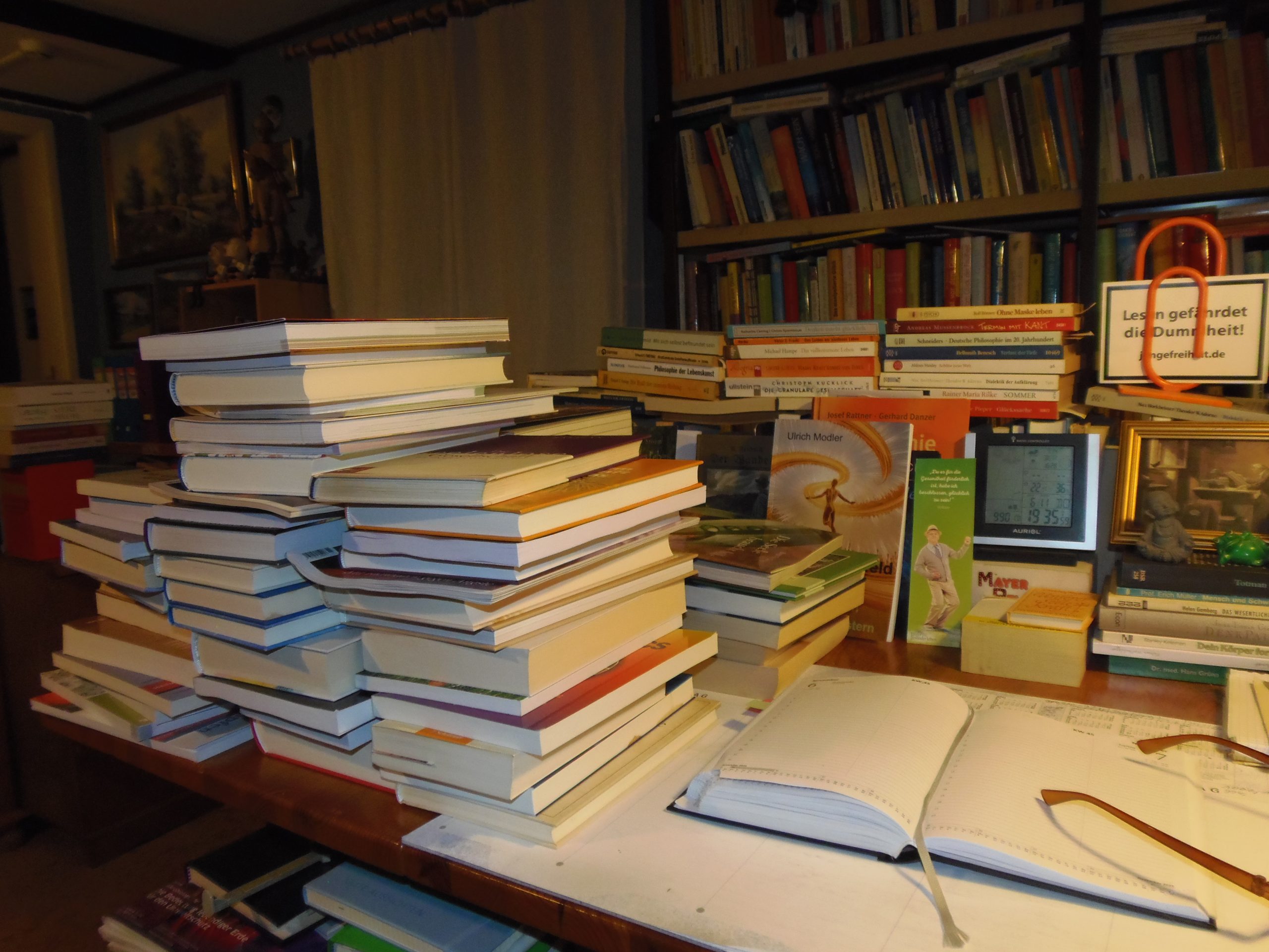 Der linke Bücherstapel ist nochmals gewachsen – mein Arbeitspensum für die nächste Zeit. Nun ist erst einmal in diesem Jahr Schluß mit Nachschub. Es wird nun dieses Material aufgearbeitet.