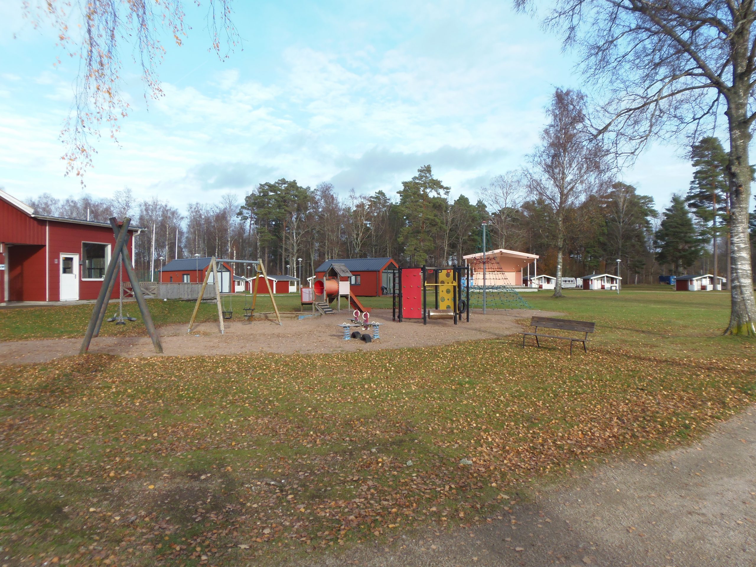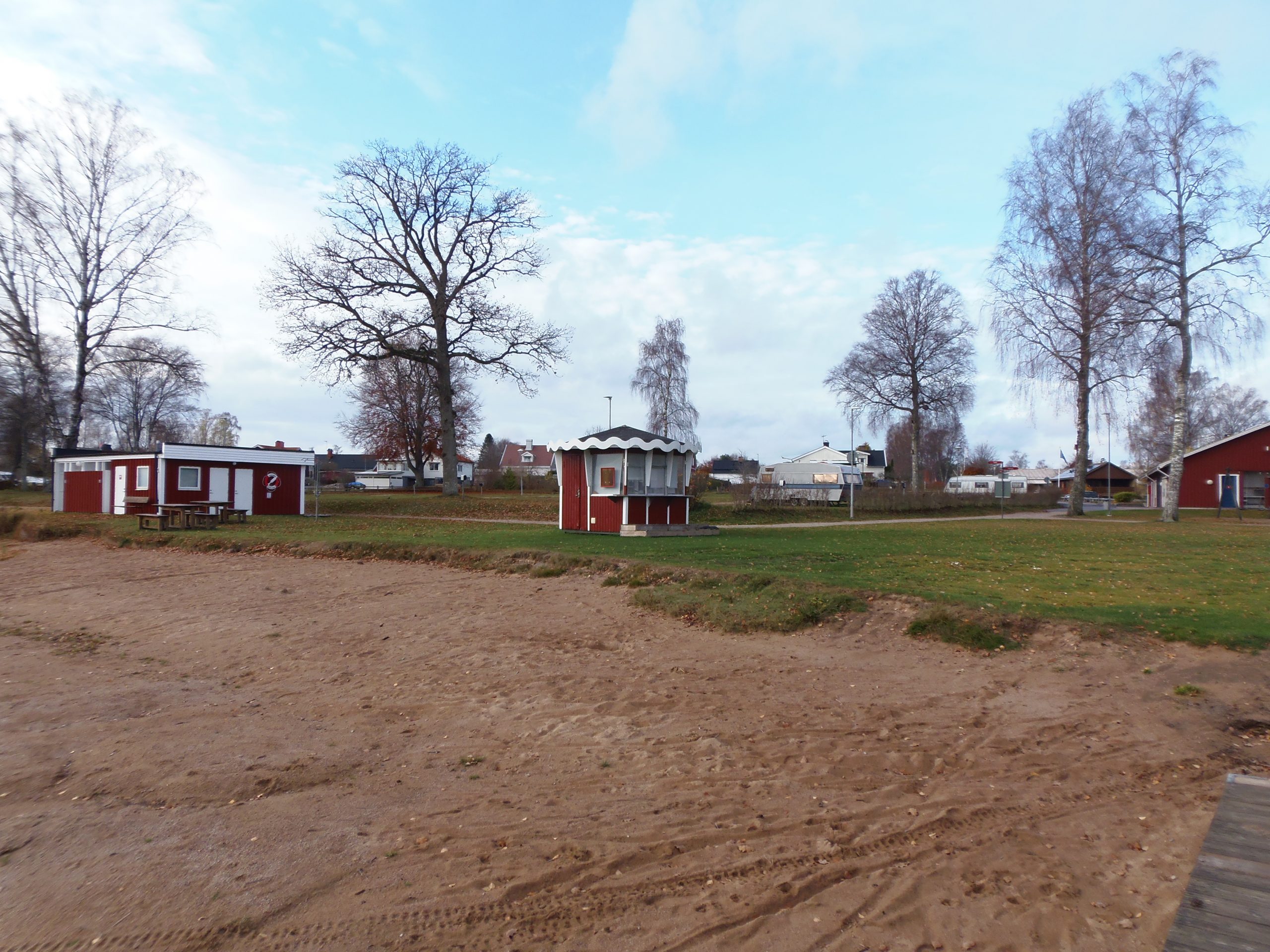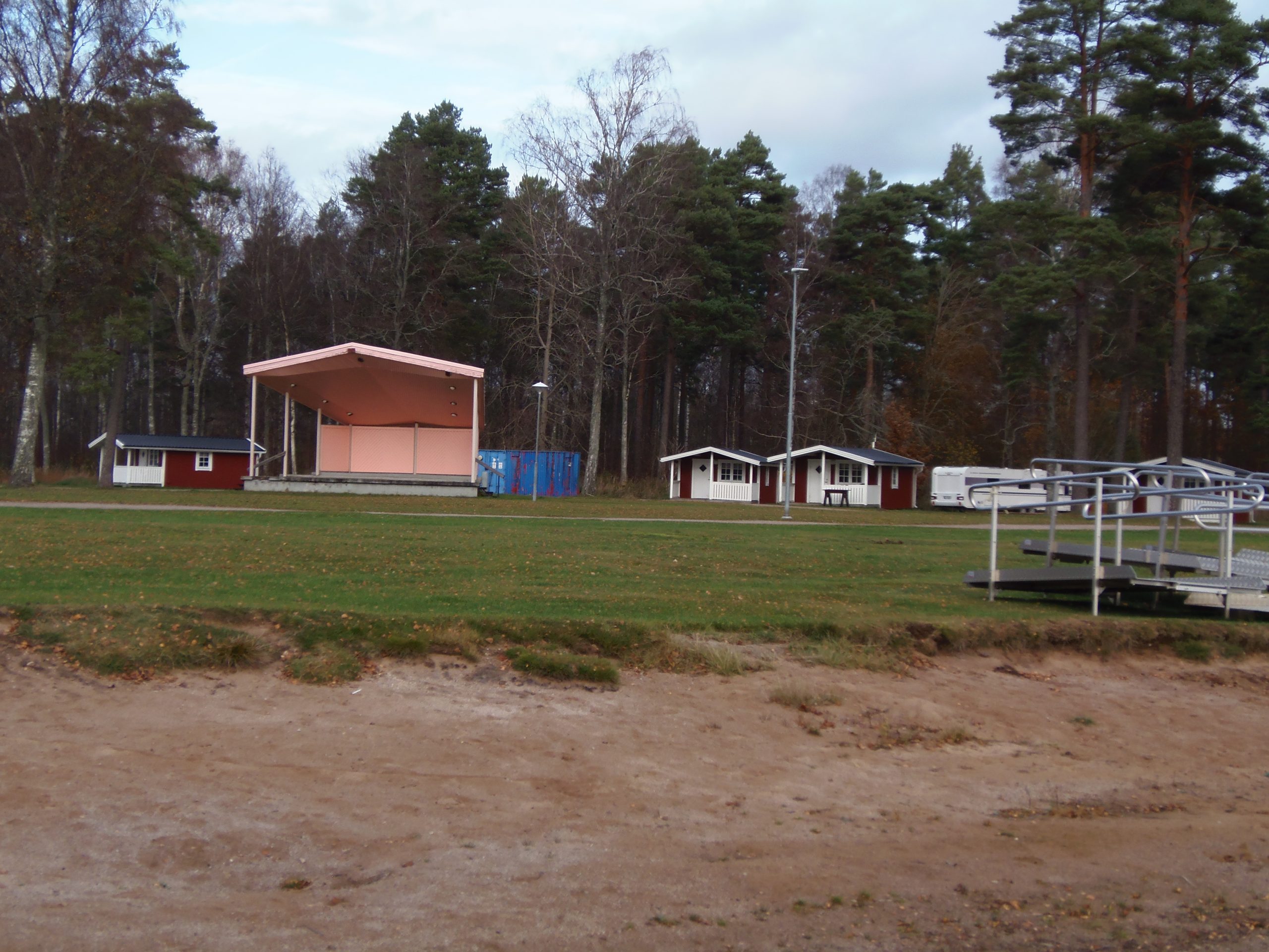 Links auf dem Gelände sind Wohnwagen und Wohnmobilstellplätze.