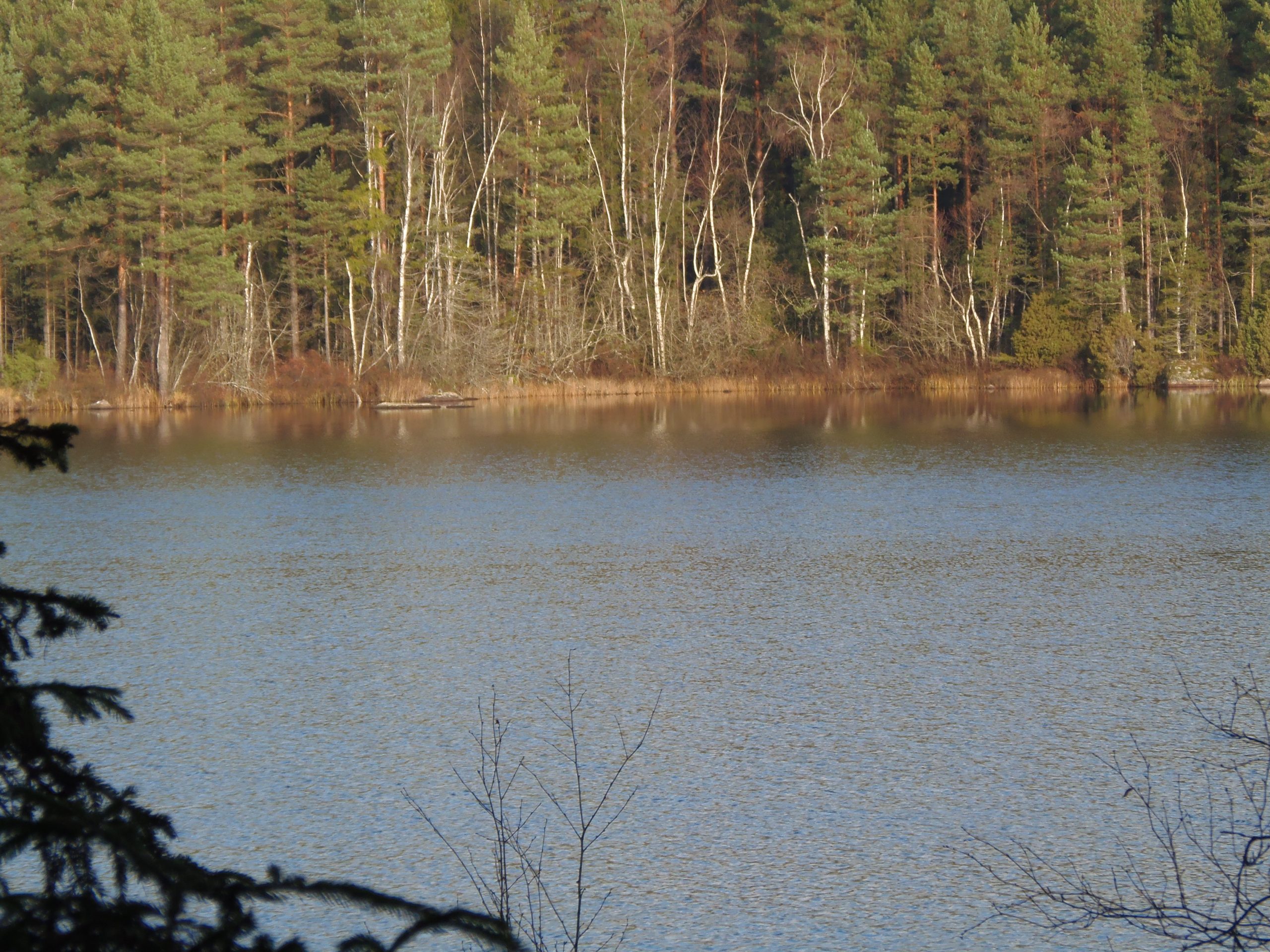 Blick vom Pfad auf die andere Seeseite. In meinen Karten ist ungefähr auf dieser Höhe eine natürliche Uranquelle (Strahlung) angezeigt.