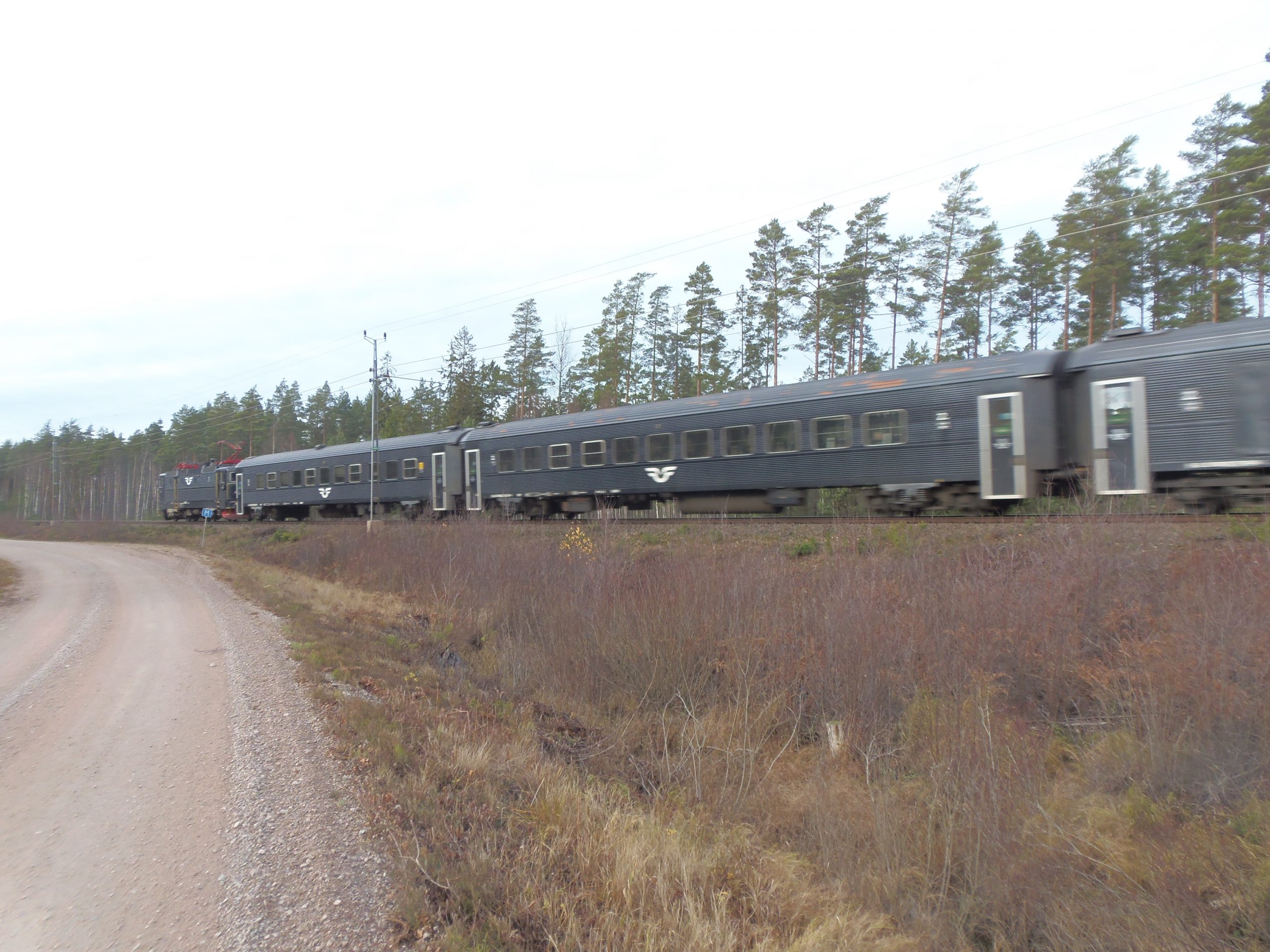Es fuhr ein typischer schwedischer Zug vorbei. Kenne hier im Bereich schon die Uhrzeiten von den Zügen. Nicht unwichtig, weil man öfters die Geleise durch Pfade überqueren muß so wie heute auch.