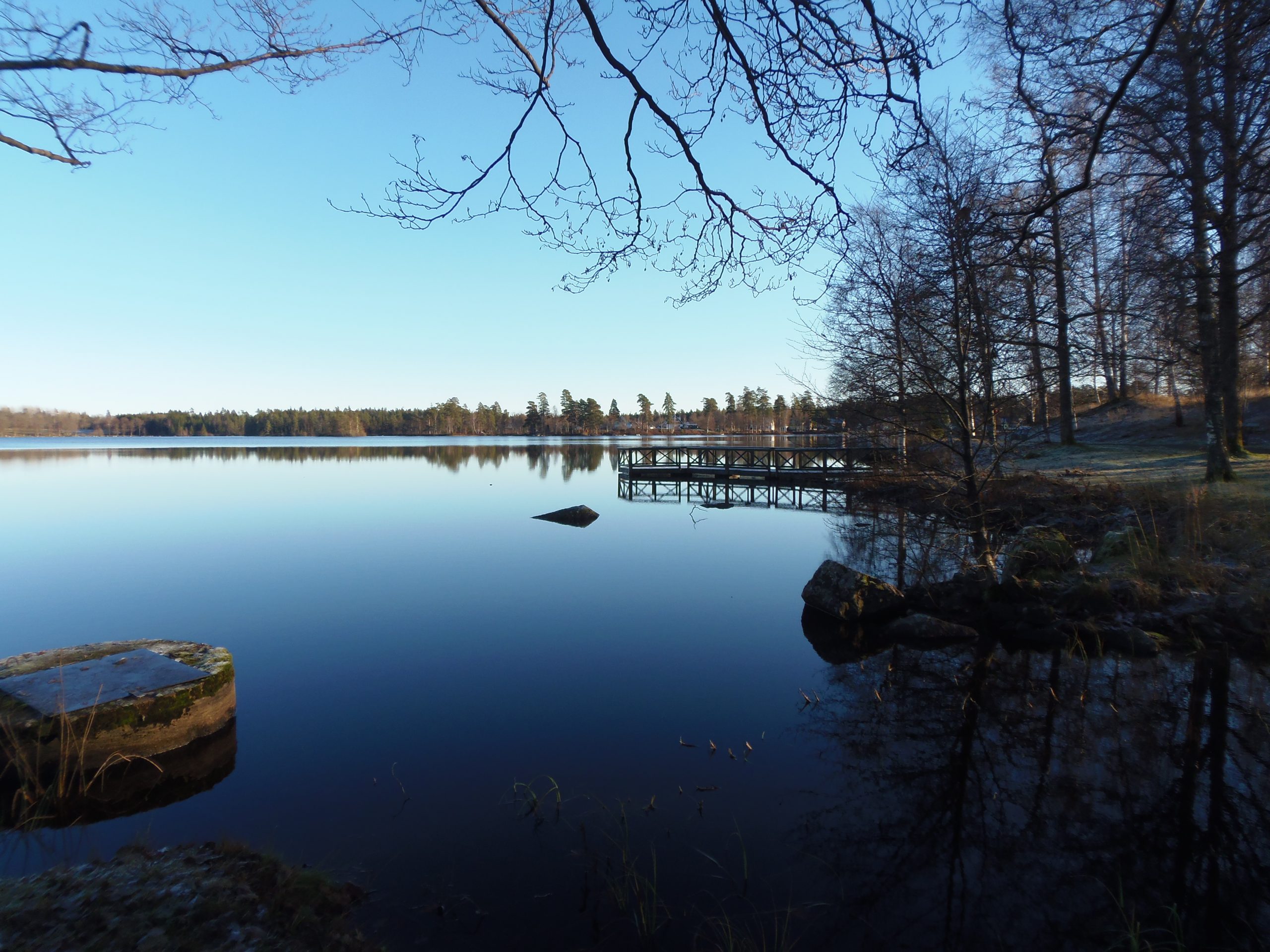 Auf der Fahrt nach Lenhovda an diesem schönen See vorbei. Heute war wirklich ein superblauer Himmel ohne Wolken. Nach einer frostigen Nacht mit minus 5° C. war es tagsüber auch nur plus ^1° C. Da wir Nordströmung haben, hat der Winter mal eine kleine Vorstellung gegeben. Der Boden war raureifweis.