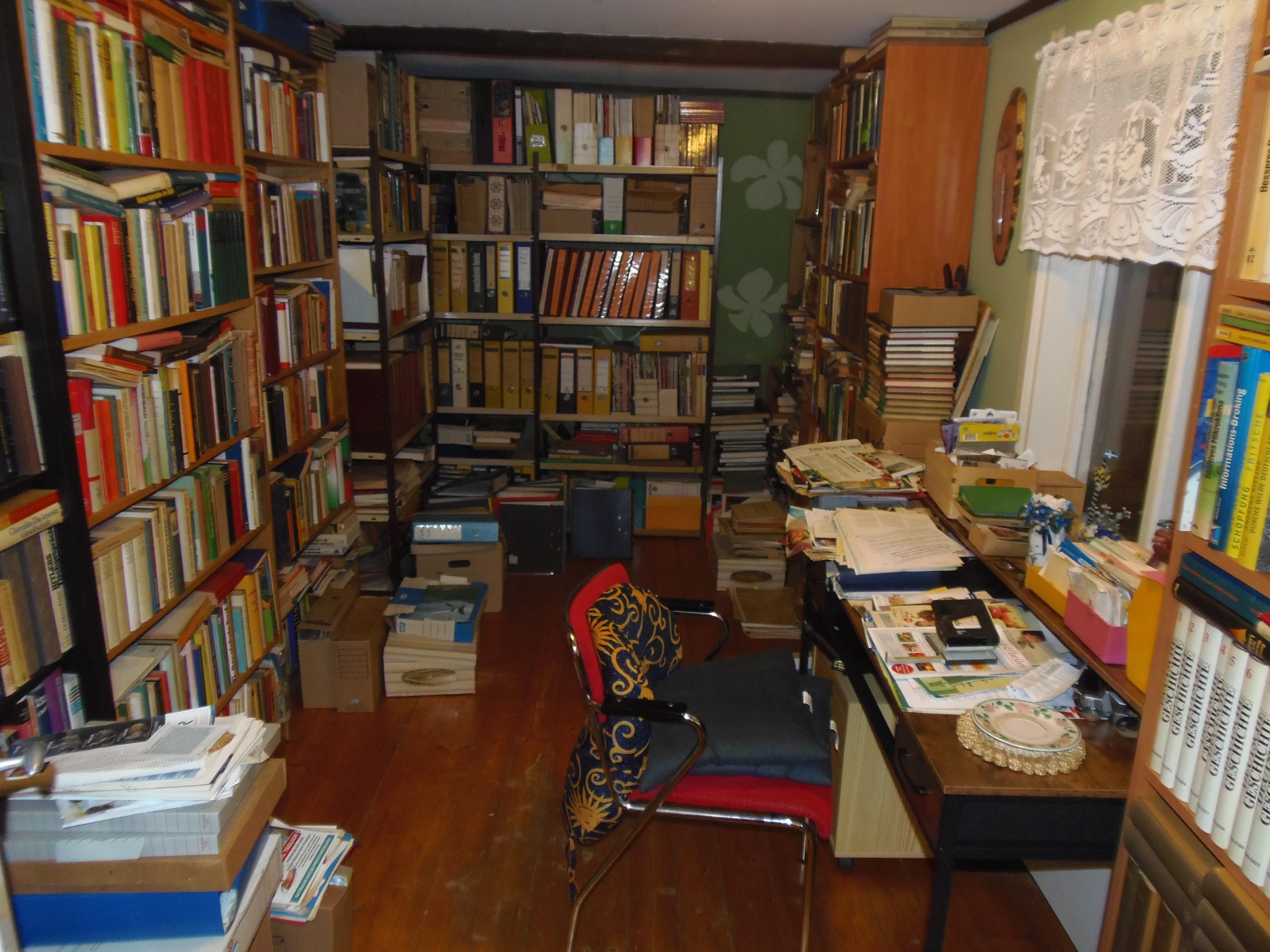 Mein Archivraum. Kaum meine ich nun habe ich endlich Ordnung und Übersicht schon stapeln sich neue Boxen und Kisten mit neuem Papier und Informationen. Manchmal frage ich mich selbst, wo kommt all das her? 😆 Mit all dem Kram wollte ich auch kein zweites Mal mehr umziehen. Wenn ich an unser Umzugsdrama denke nee auf keinen Fall mehr. Wir haben zwei Lastzüge gebraucht und knapp 15 000 € bezahlt und konnten noch nicht alles mitnehmen.