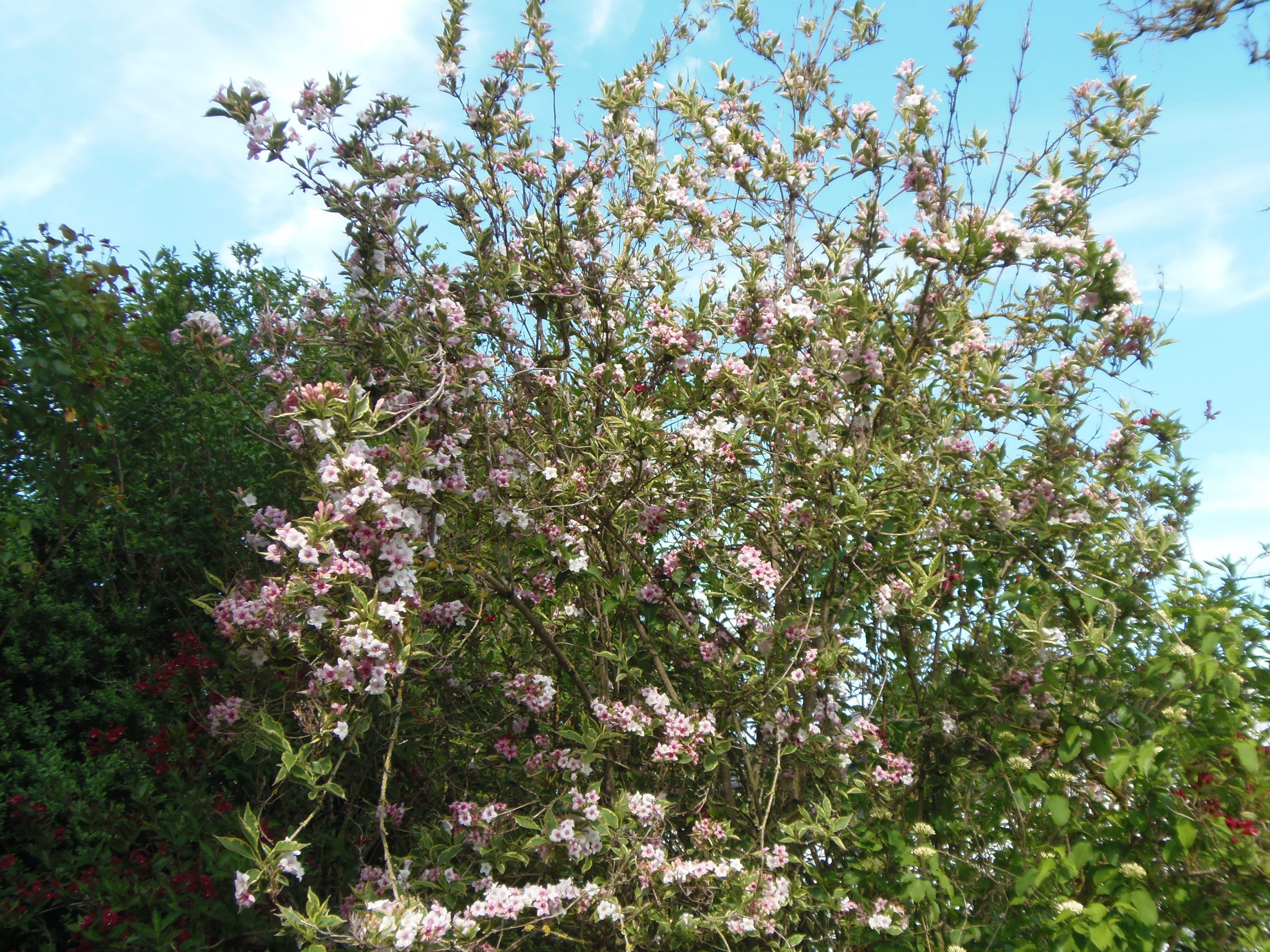Weigelie in unserem Wössinger Garten. Hier haben wir schon 9 verschiedene Sorten angepflanzt, die sich fast alle sehr gut entwickelt haben. Bin ja froh, eine Gärtnerei in einem Weiler bei Hovmantorp entdeckt zu haben. Dort hatten wir schon öfters eingekauft. Ist mir lieber dort zu kaufen wie z. B. im Bauhaus in Växjö die umgestellt haben auf so komische Selbstbucherkassen. So etwas unterstütze ich nur ungern.