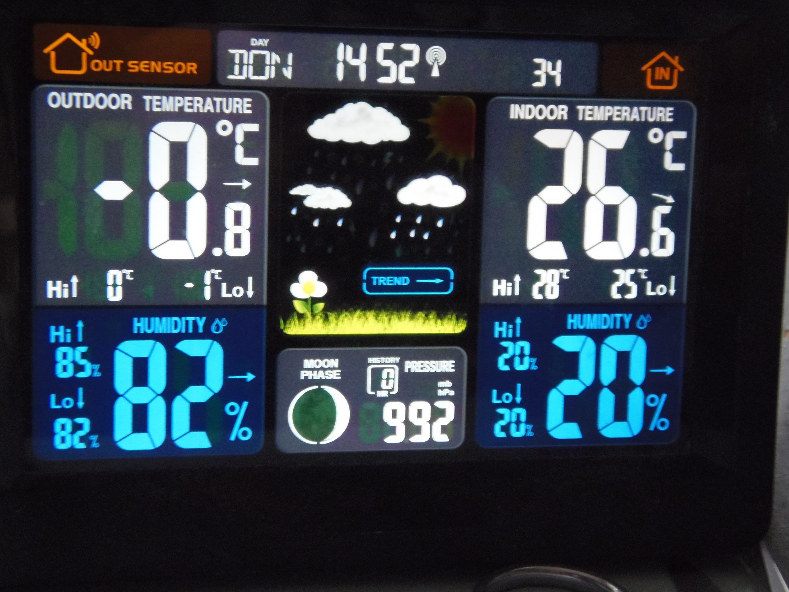 Um 19 Uhr minus 1,2° C. grau bedeckter Himmel und kurzzeitig war mal ganz leichter Schneegeriesel mit hauchdünnem Belag.