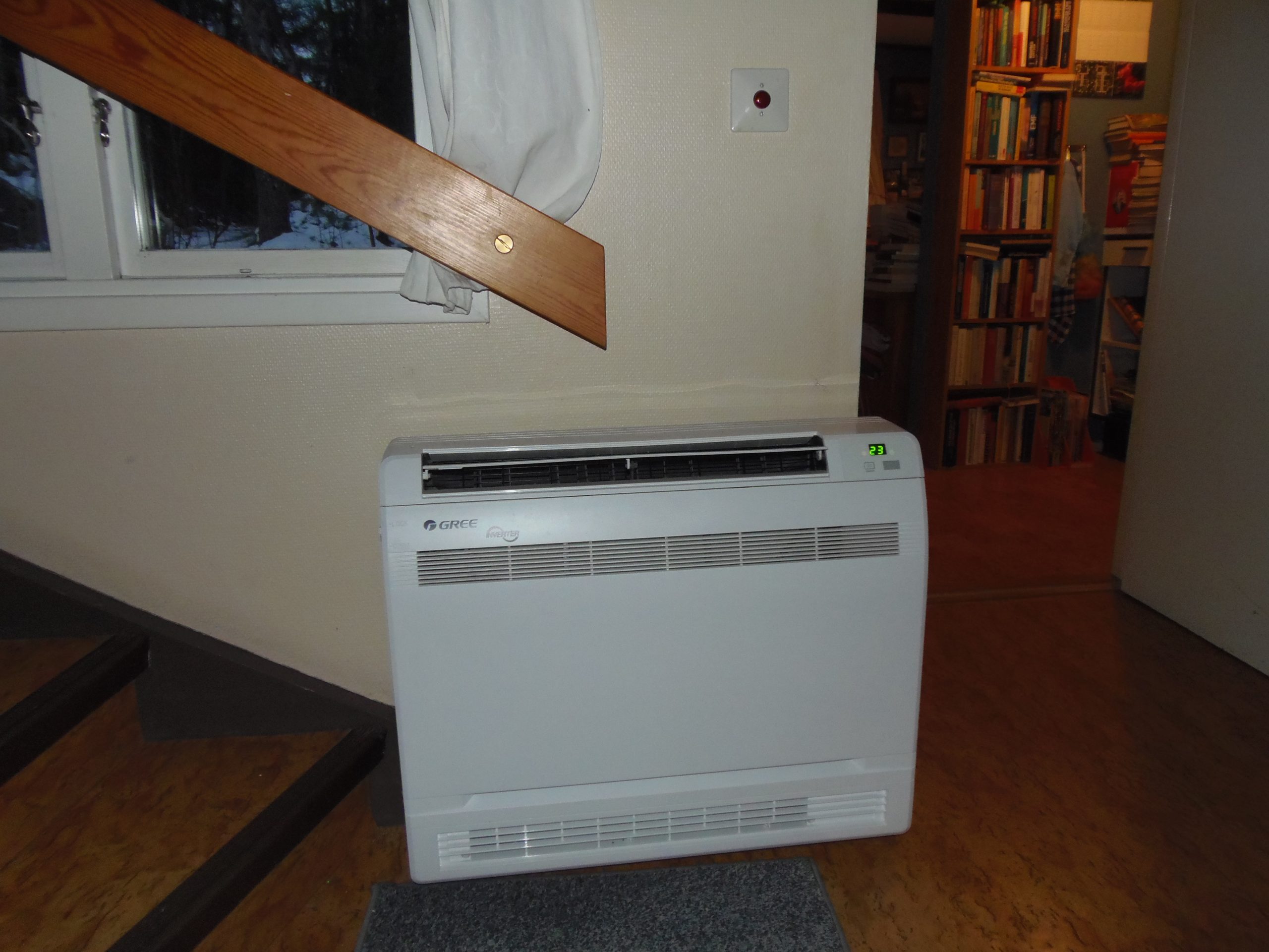 Dieses Gerät seht unten bei mir im Flur und wird von der Luft – Wärmepumpe gespeist. Oben bei Frau Gemahlin hängt ein Gebläse an der Wand. Durch den kalten Winter haben wir mehr Strom gebraucht. Auch da will ich alles noch mehr optimieren.