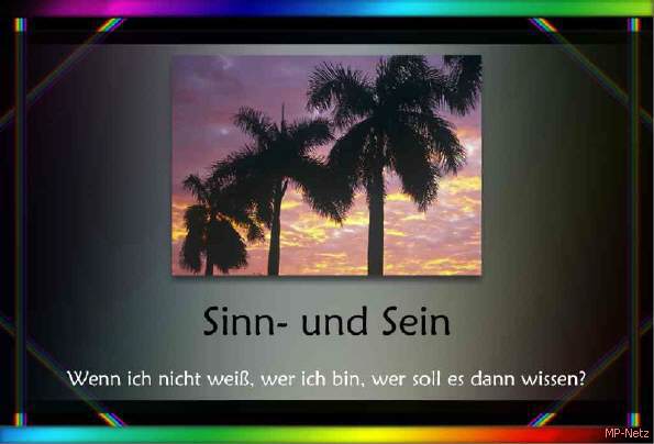 Sinn und Sein: Wenn ich nicht weiß, wer ich bin, wer soll es dann wissen? Wenn ich selber nicht weiß, in welcher Welt ich lebe, hilft mir auch kein positives Denken weiter, noch habe ich eine Orientierung für mein tägliches Handeln und mein Leben.