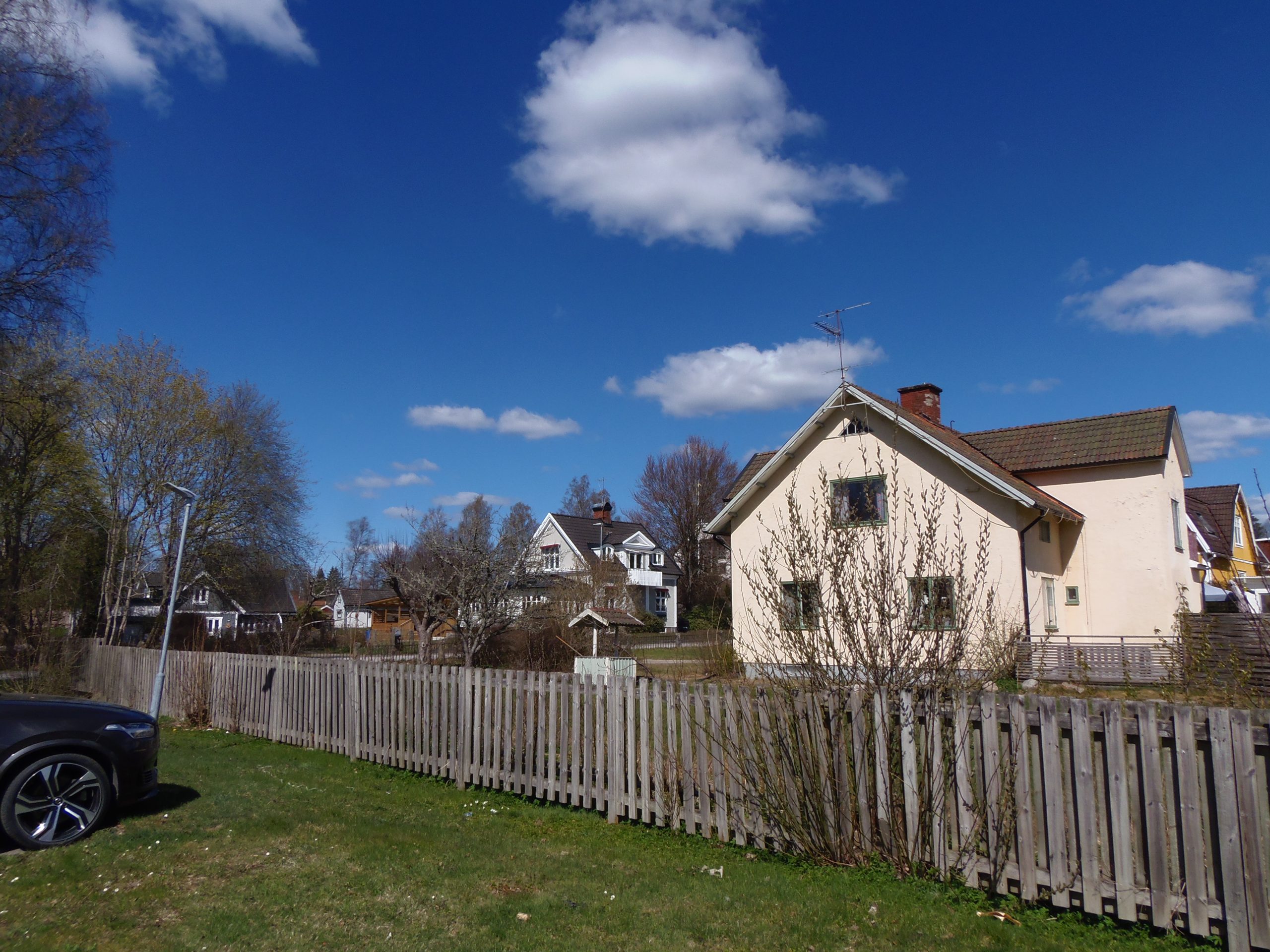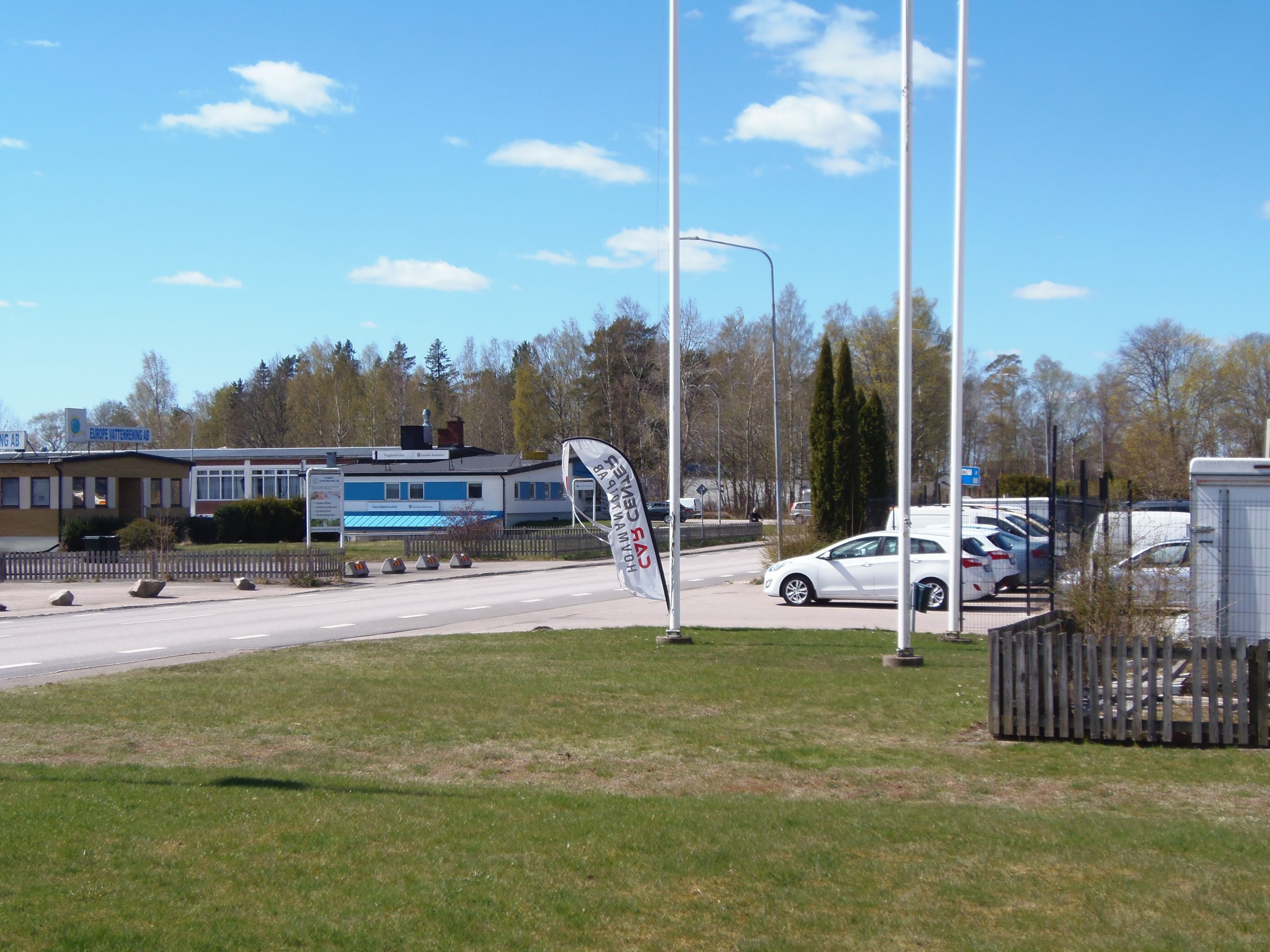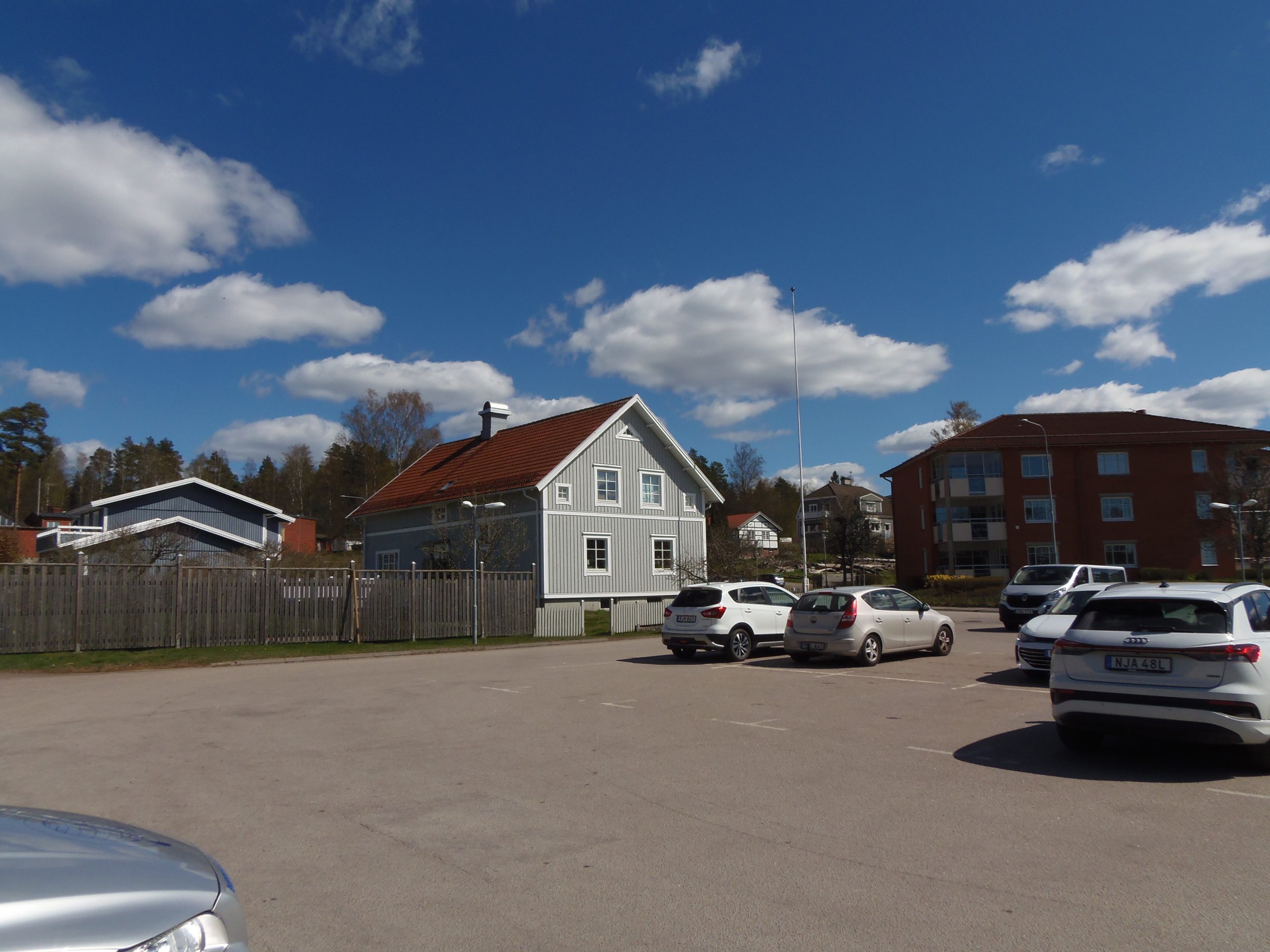 Parkplatz ICA Supermarkt in Hovmantorp. Das Wetter wie ersichtlich blauer Himmel mit ca. 1/3 Bewölkung. Mäßig warm mit 13° C. durch überwiegend Nordströmung.