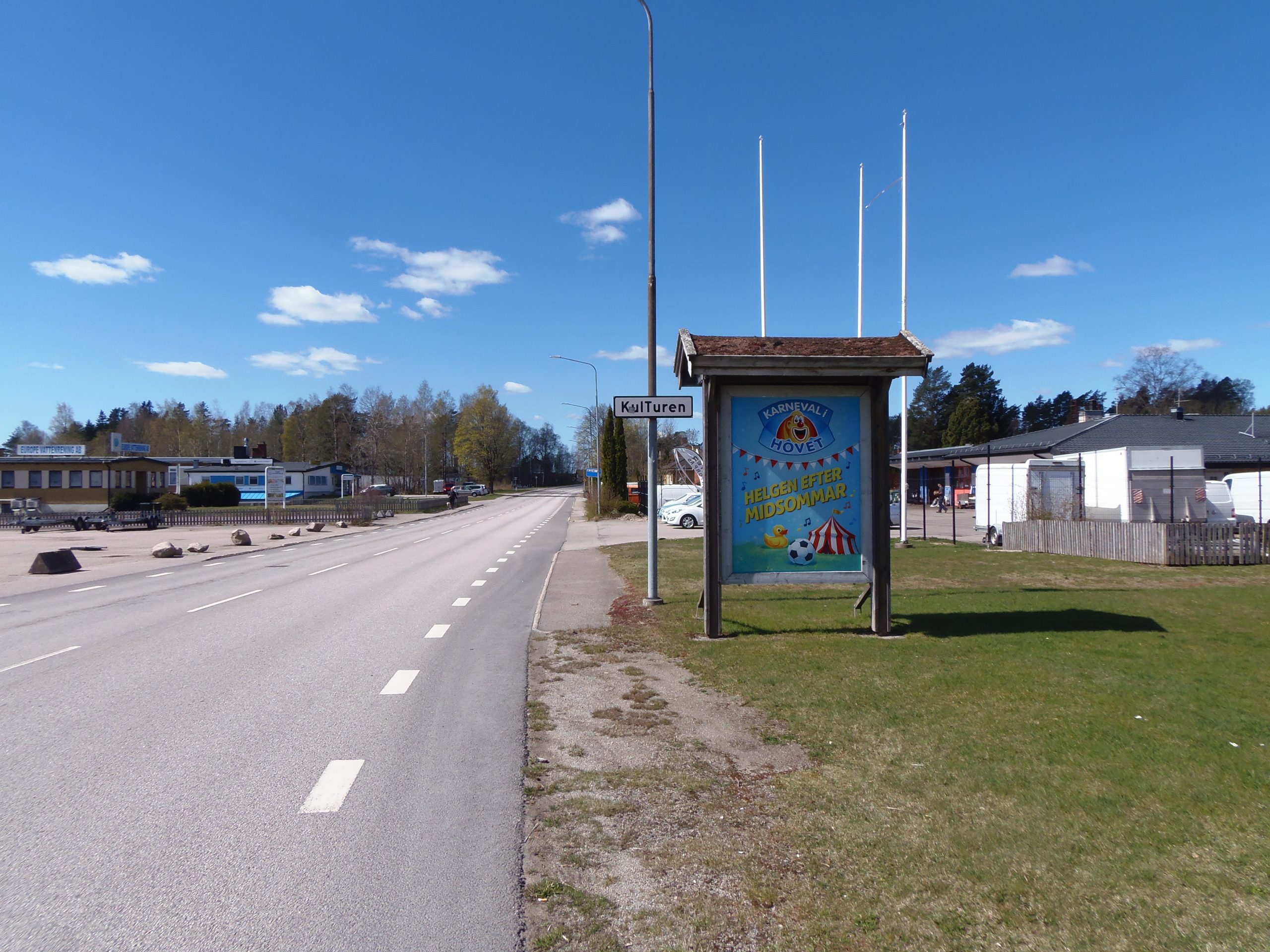 Ortseinfahrt nach Hovmantorp wie wir hereinfahren.