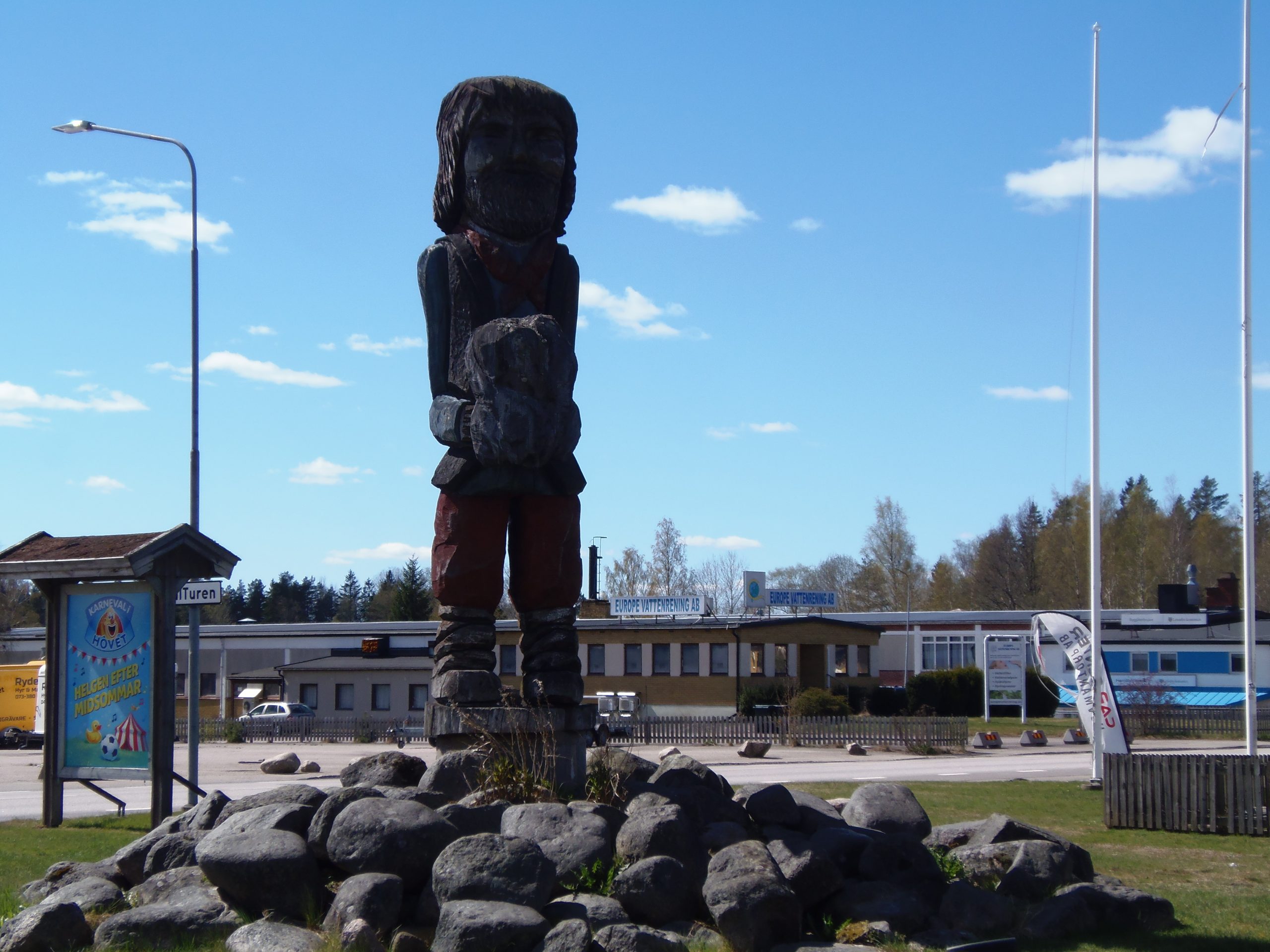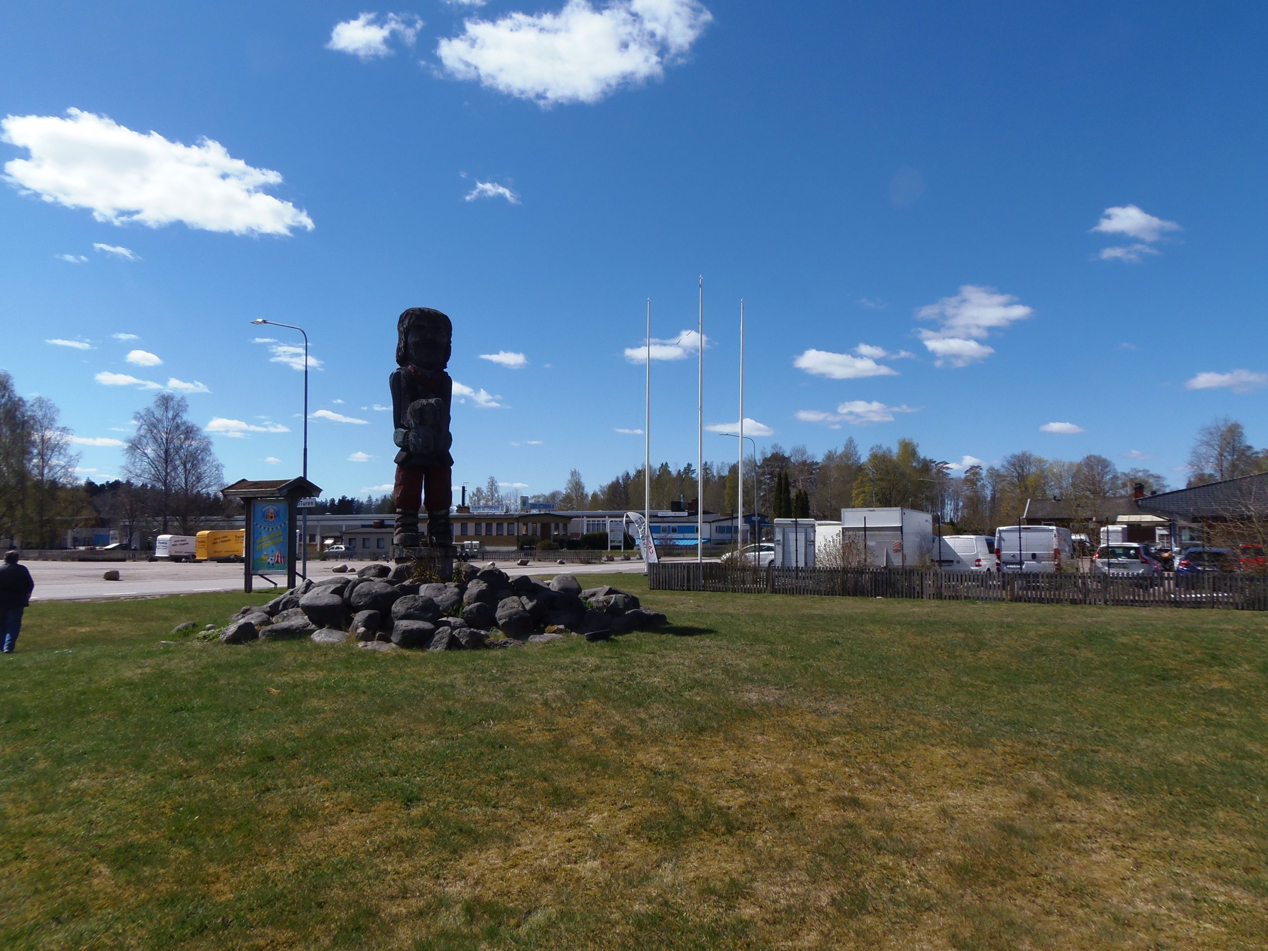 Besser habe ich die Staue nicht erwischt weil helles Gegenlicht und die Statue dunkler. Im Hintergrund ein Teil vom Industrie – Gewerbegebiet.
